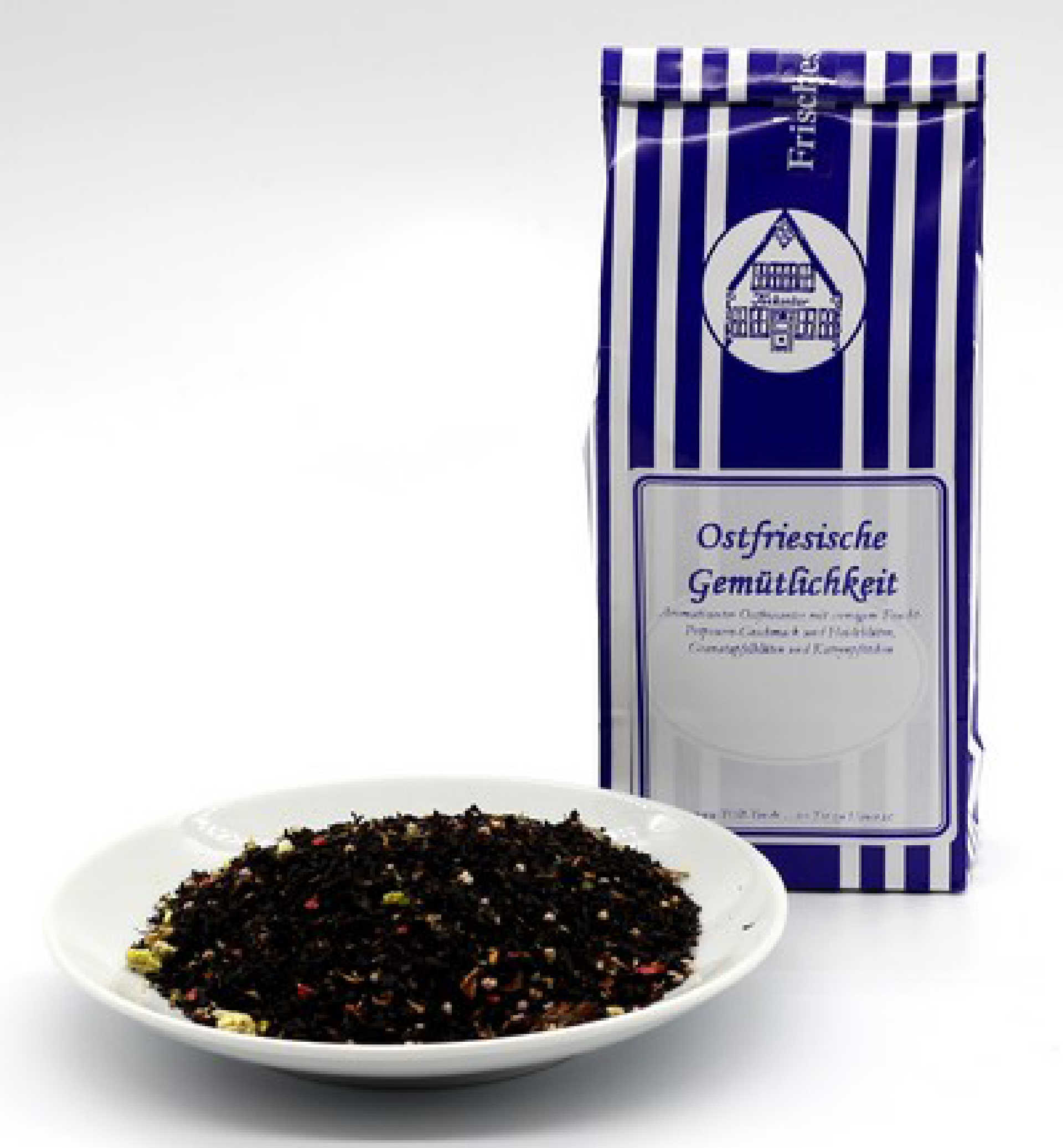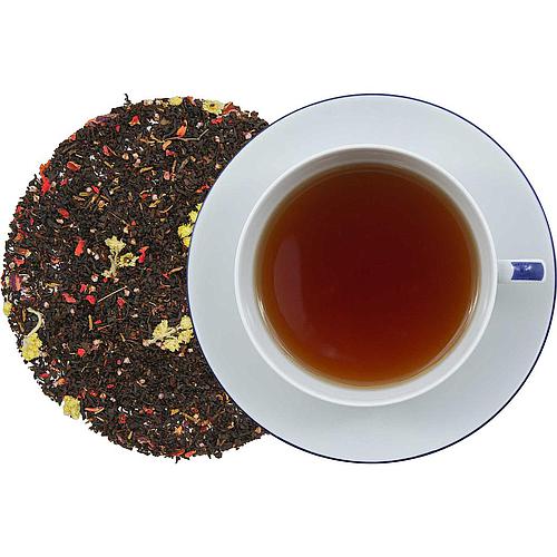 Aromatisierter Ostfriesentee mit cremigem Frucht-Potpourri-Geschmack und Heideblüten, Granatapfelblüten und Katzenpfötchen