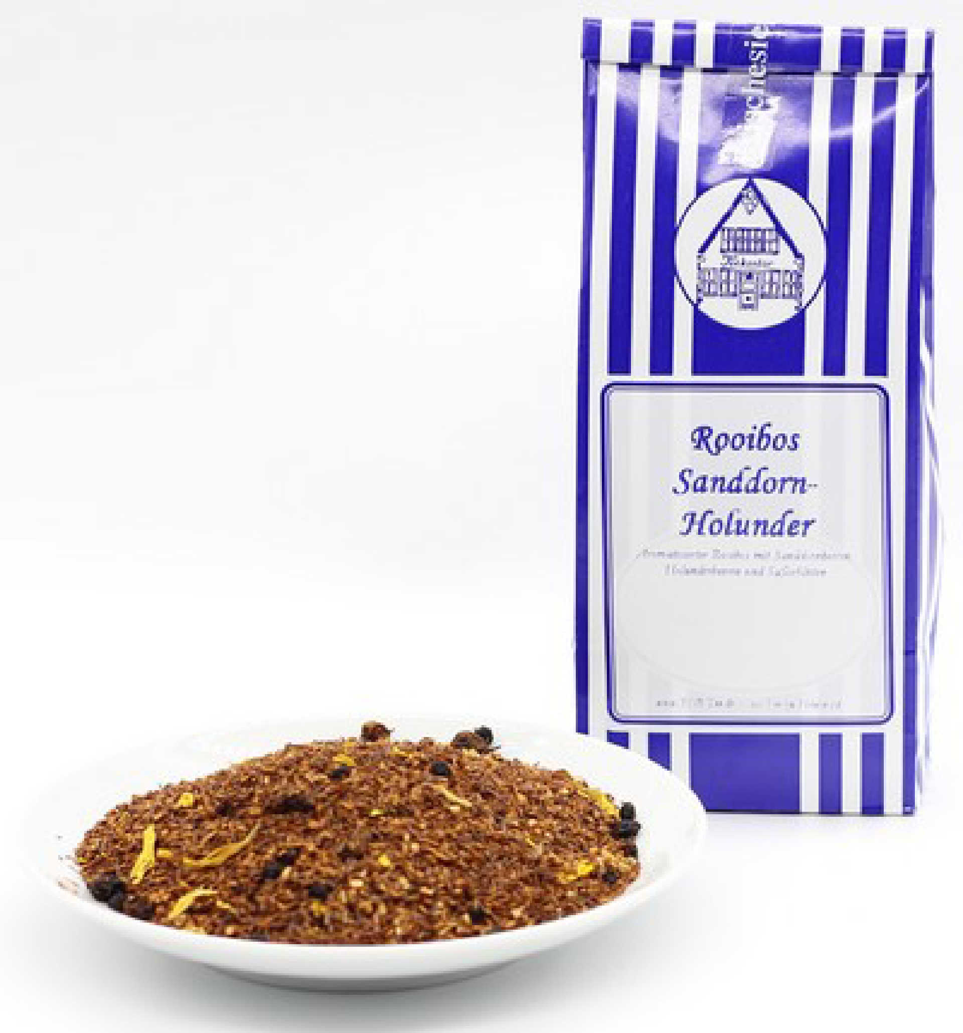 Aromatisierter Rooibos mit Sanddornbeeren, Holunderbeeren und Saflorblüten