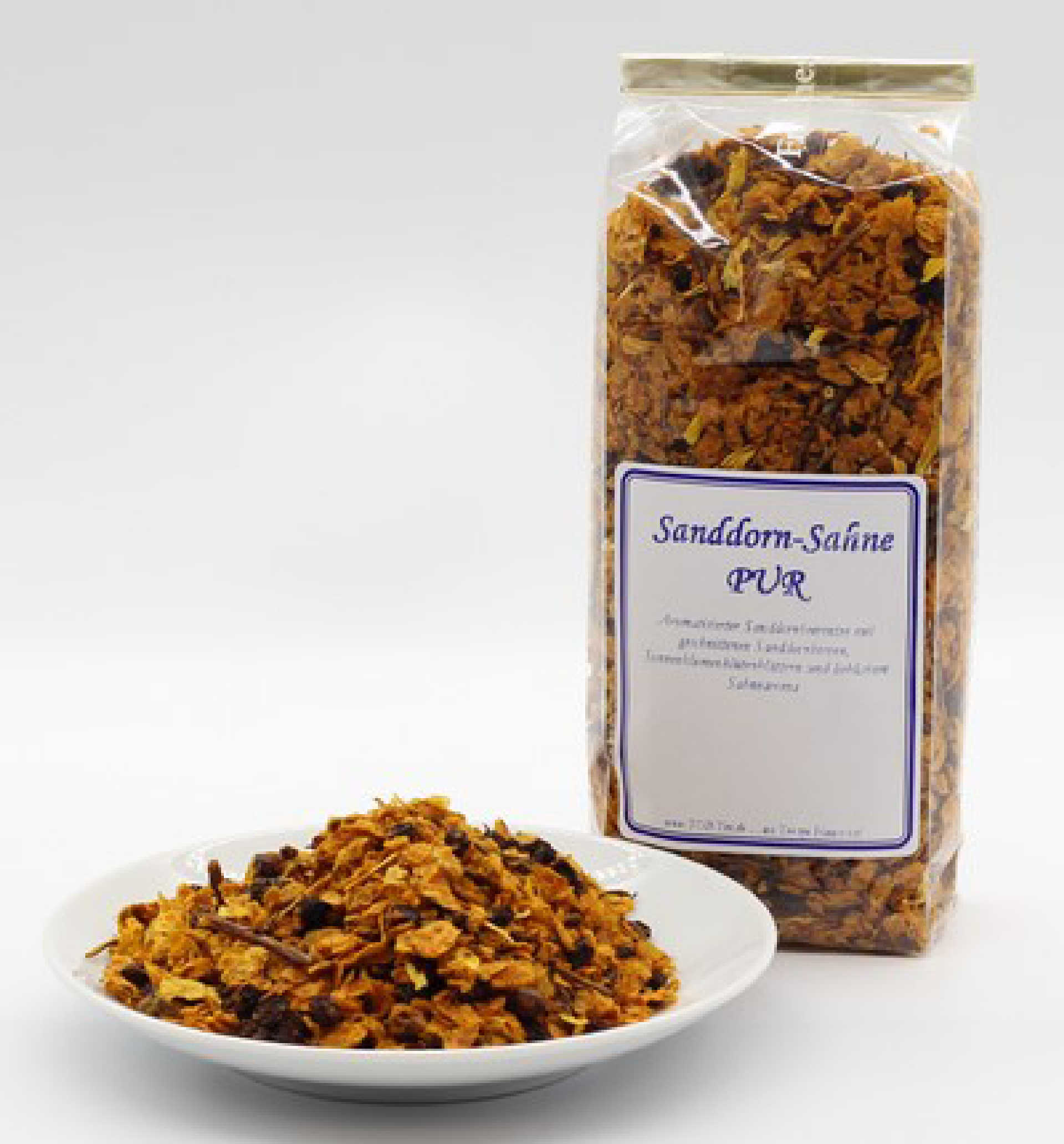 Sanddorn trifft Sahne – mild, lieblich, goldorange in der Tasse.