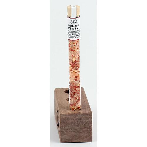 Knoblauch-Chili Salz schmeckt durch seinen deftigen und pikanten Geschmack besonders gut zu Fleisch und Fischgerichten.
