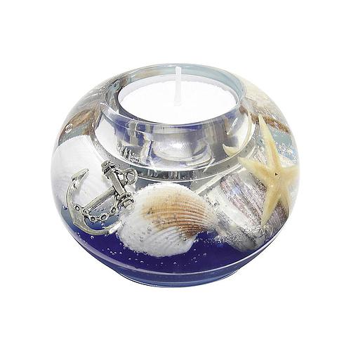 Kreis "Meerzeit" silberfarben, mit Möwe auf Base aus Mangoholz