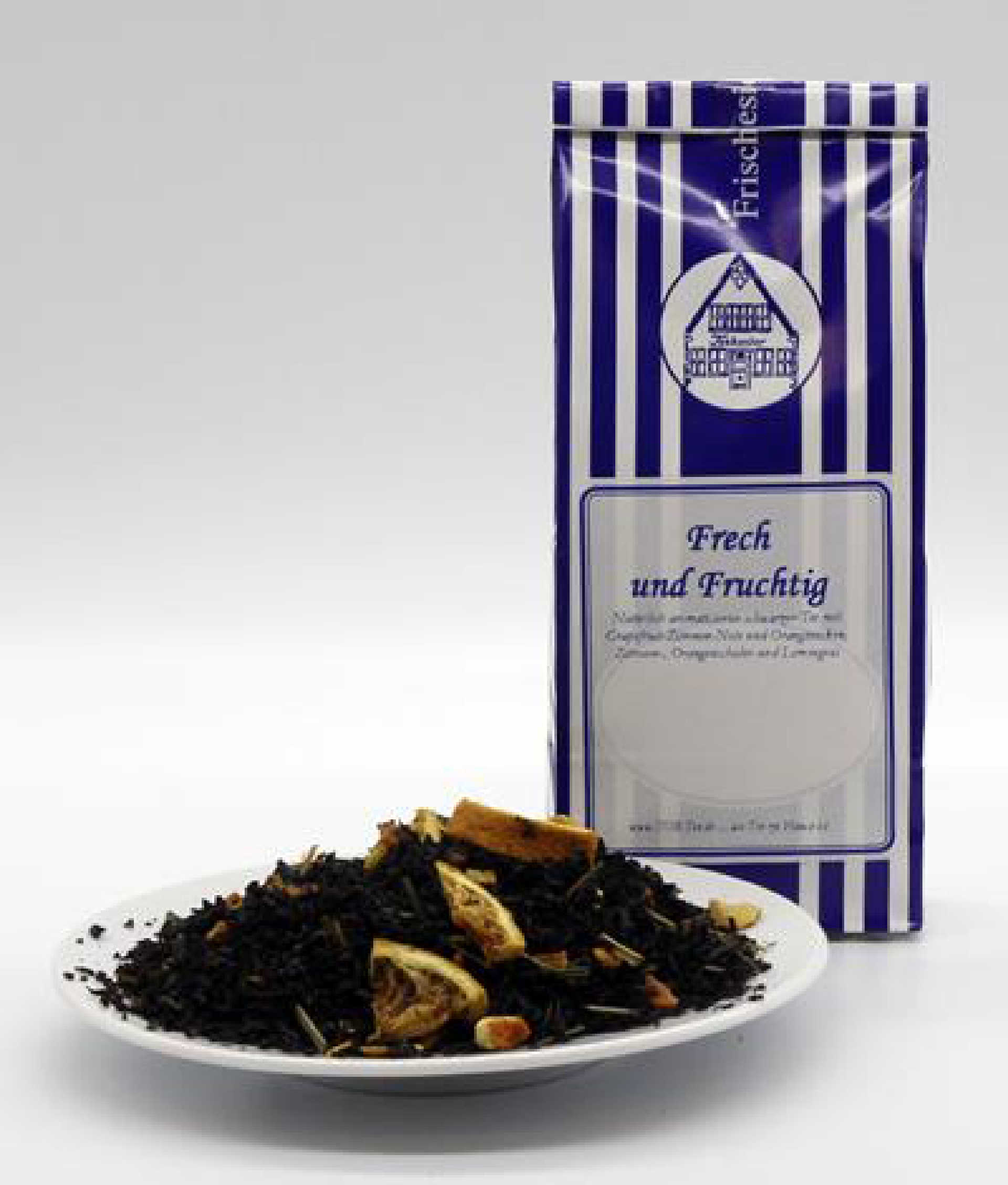 Natürlich aromatisierter schwarzer Tee mit Grapefruit-Zitronen-Note und Orangenecken, Zitronen-, Orangenschalen und Lemongras