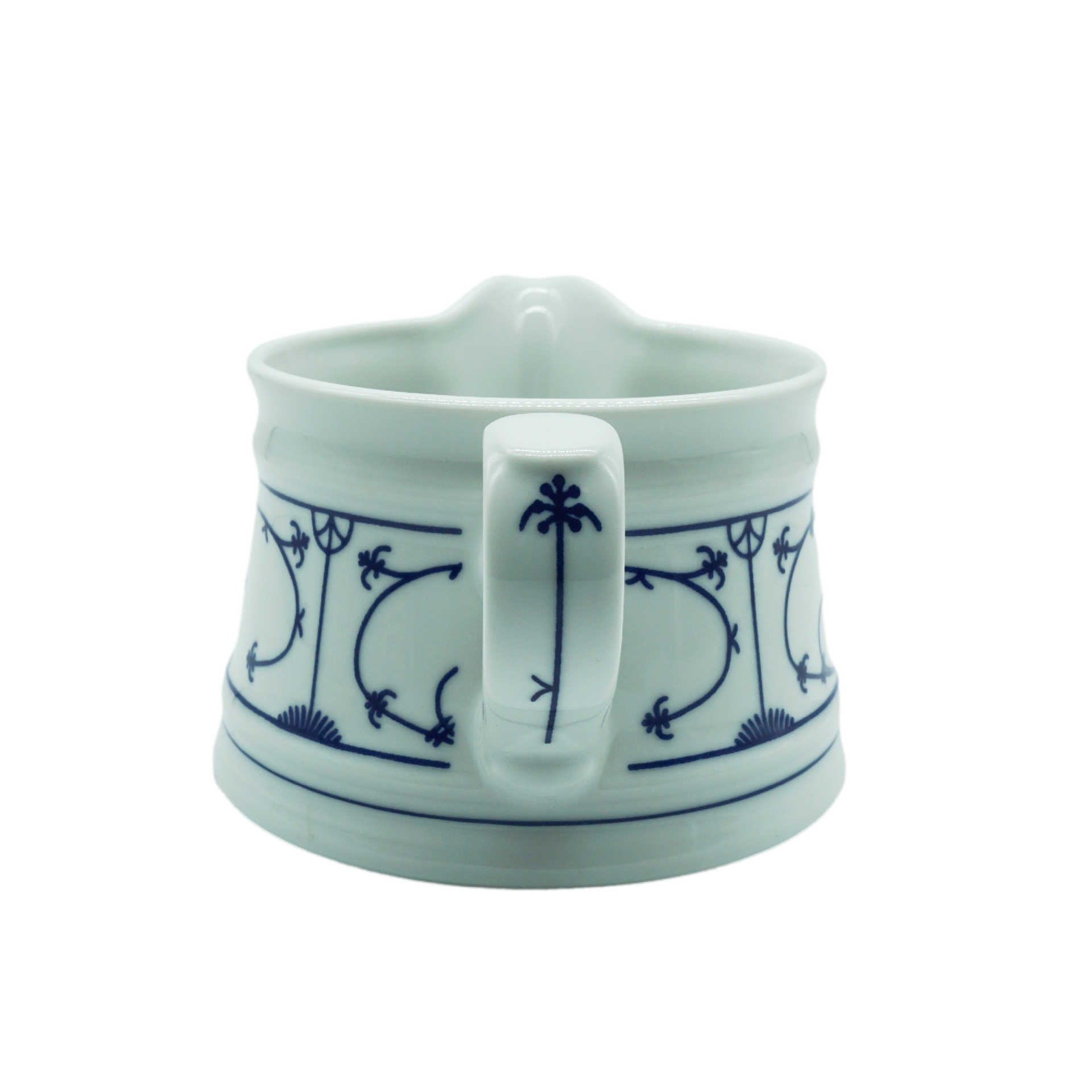 Indisch Blau aus dem Hause Winterling ist auf dem Porzellanmarkt bezeichnend für Tradition. Seit über 100 Jahren wird Indisch Blau nahezu unverändert produziert. Die eigenwilligen Dekorelemente wirken auf der klaren Form schlicht und edel zugleich. Granatapfel, Pfirsich und Astern waren die typischen Elemente von Blaudekoren. Indisch Blau ist eine klassisch-schlichte Variante dieser beliebten Motive. Immer steht noch viel Handarbeit hinter der Herstellung und Dekorierung dieses Porzellans. Der Umgang mit Blautönen ist anspruchsvoll wie in alten Zeiten. Leichte Farbunterschiede gab und gibt es und sind der Beweis für die Echtheit von Indisch Blau.