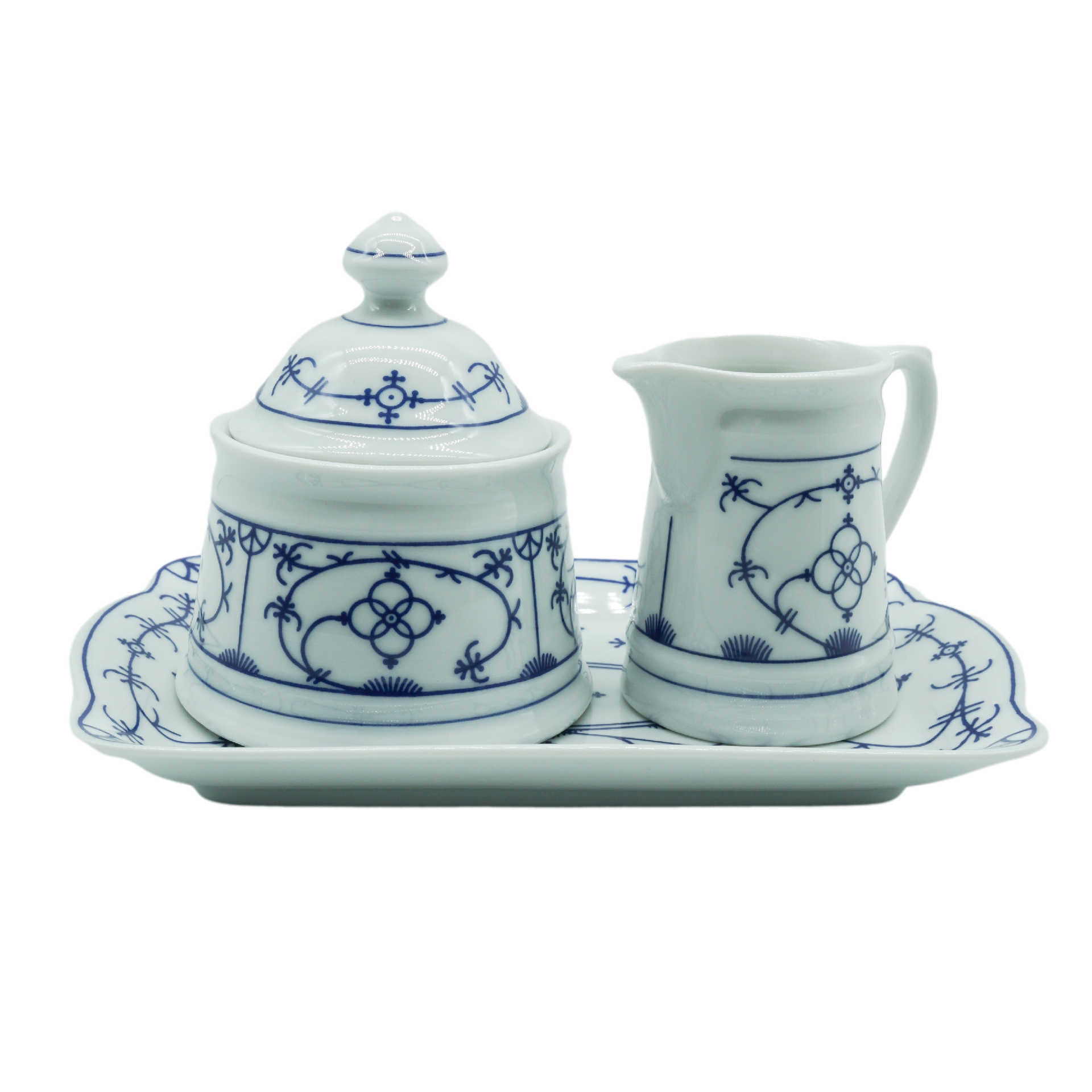 Indisch Blau aus dem Hause Winterling ist auf dem Porzellanmarkt bezeichnend für Tradition. Seit über 100 Jahren wird Indisch Blau nahezu unverändert produziert. Die eigenwilligen Dekorelemente wirken auf der klaren Form schlicht und edel zugleich. Granatapfel, Pfirsich und Astern waren die typischen Elemente von Blaudekoren. Indisch Blau ist eine klassisch-schlichte Variante dieser beliebten Motive. Immer steht noch viel Handarbeit hinter der Herstellung und Dekorierung dieses Porzellans. Der Umgang mit Blautönen ist anspruchsvoll wie in alten Zeiten. Leichte Farbunterschiede gab und gibt es und sind der Beweis für die Echtheit von Indisch Blau.