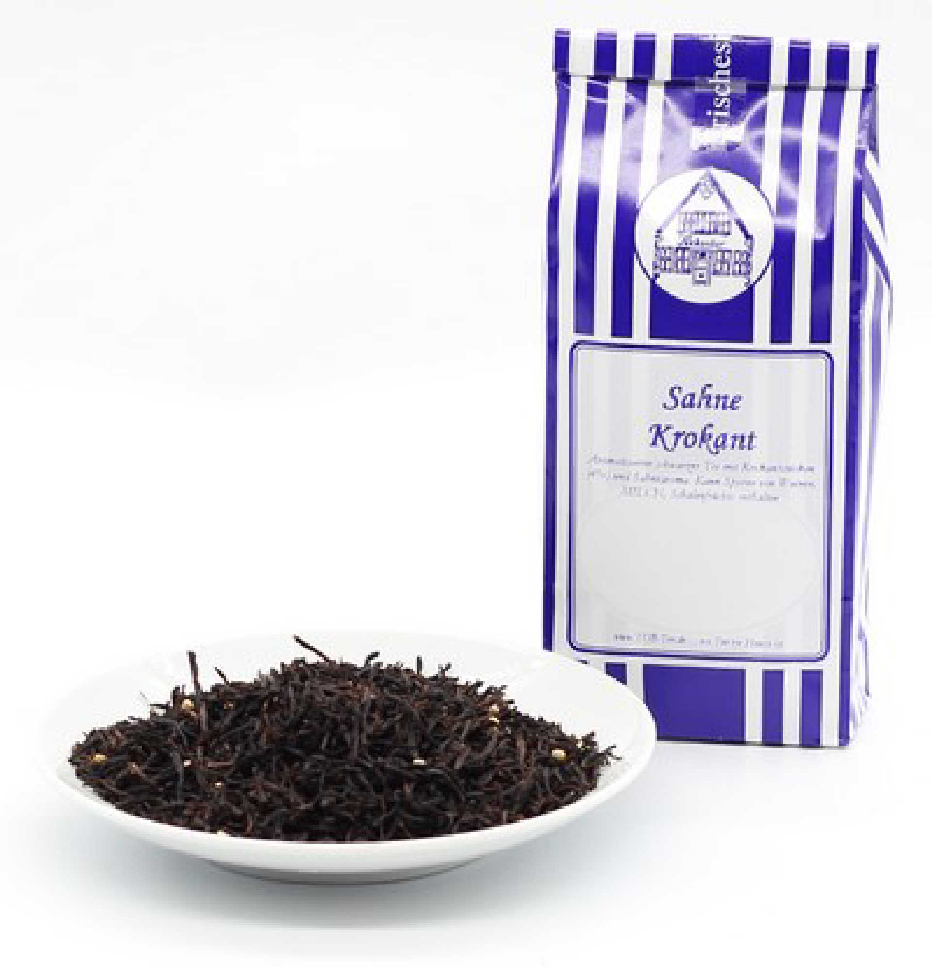 Krokant und Sahne auf Schwarztee – herrlich nussig und cremig.