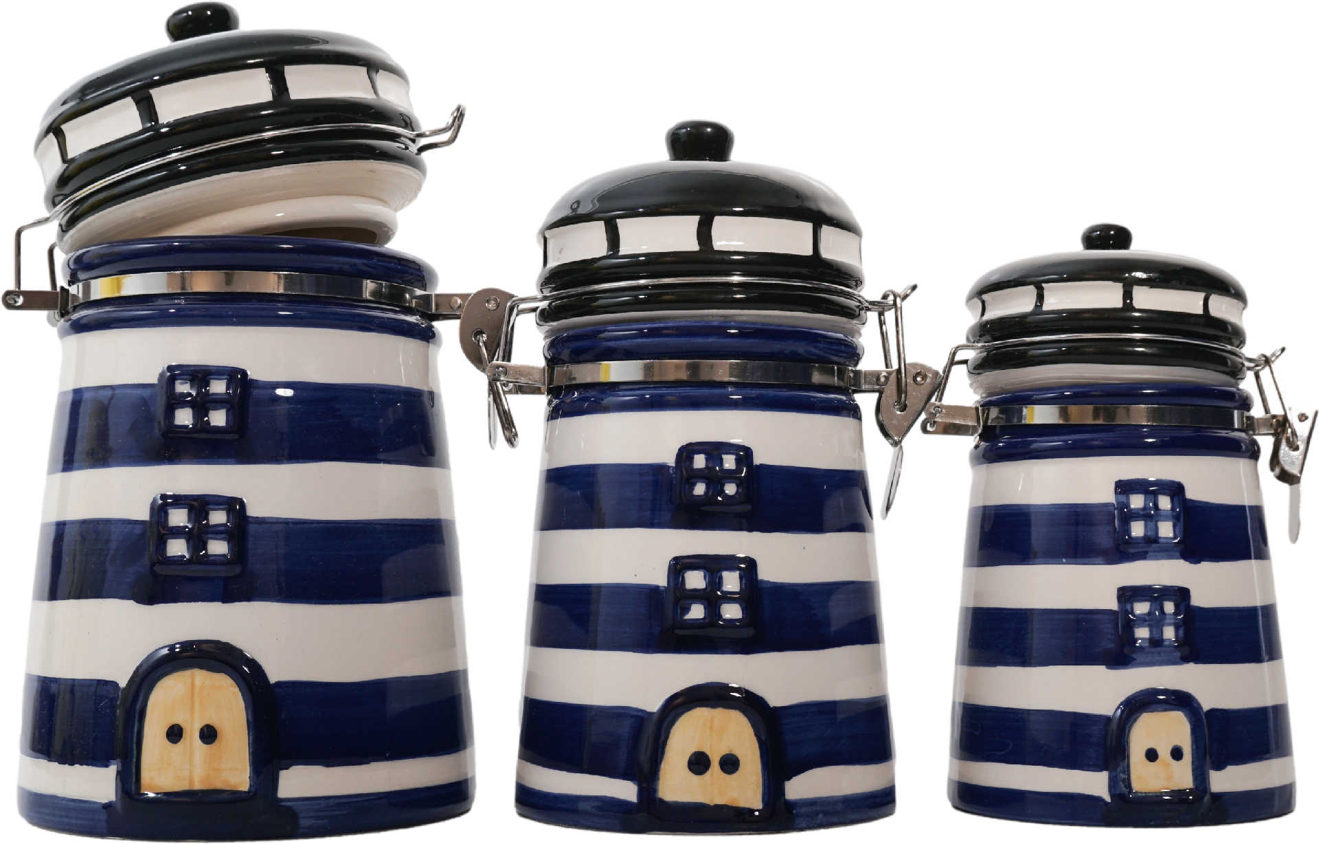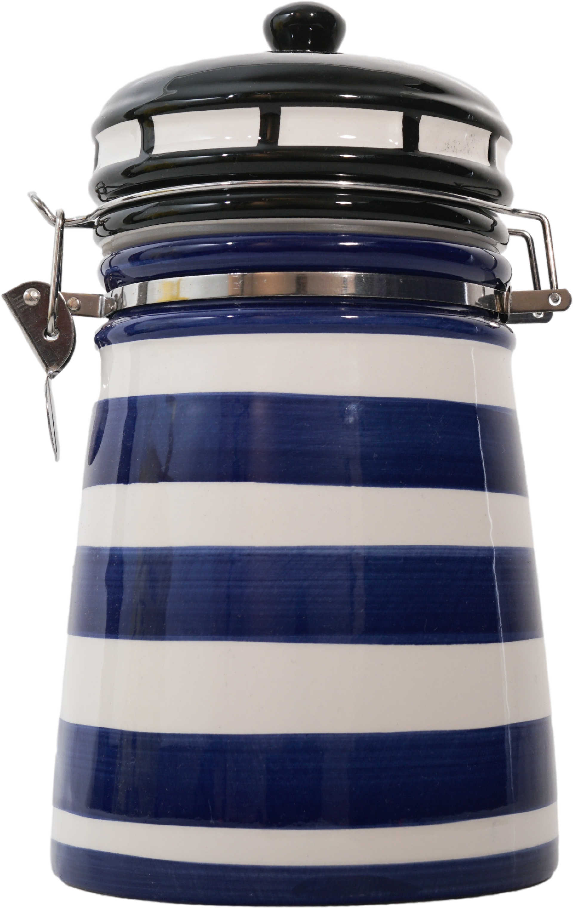Keramik-Leuchtturmvorratsdose ca. 21.5x11cm blau/weiß 500g