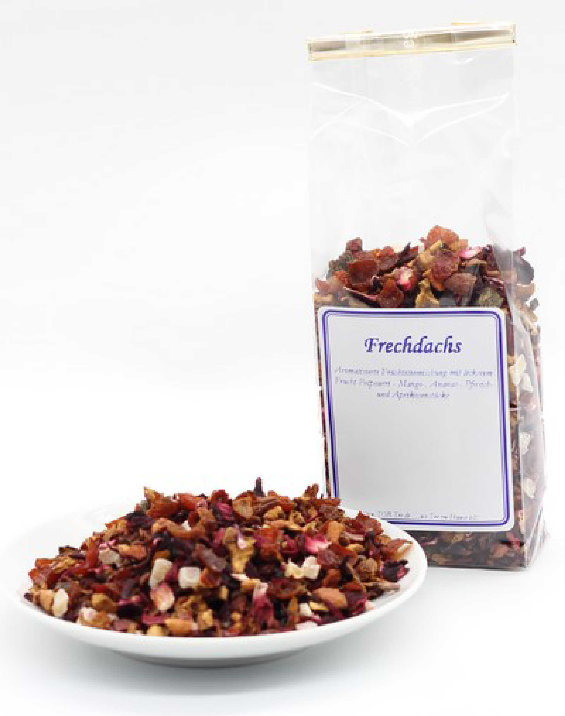 Aromatisierte Früchteteemischung (Hibiscus, Hagebutte und Apfel) mit leckerem Frucht-Potpourri - Mango-, Ananas-, Pfirsich- und Aprikosenstücke
